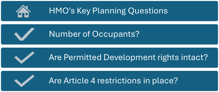 SMALL HMOs (USE CLASS C4): Up to 6 occupants. May be done under permitted development rights without requiring a full planning application - unless restricted by Article 4